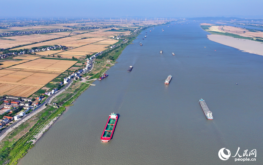 九江市柴桑区江洲镇的长江段航道,运输船舶有序航行。人民网 朱海鹏 摄