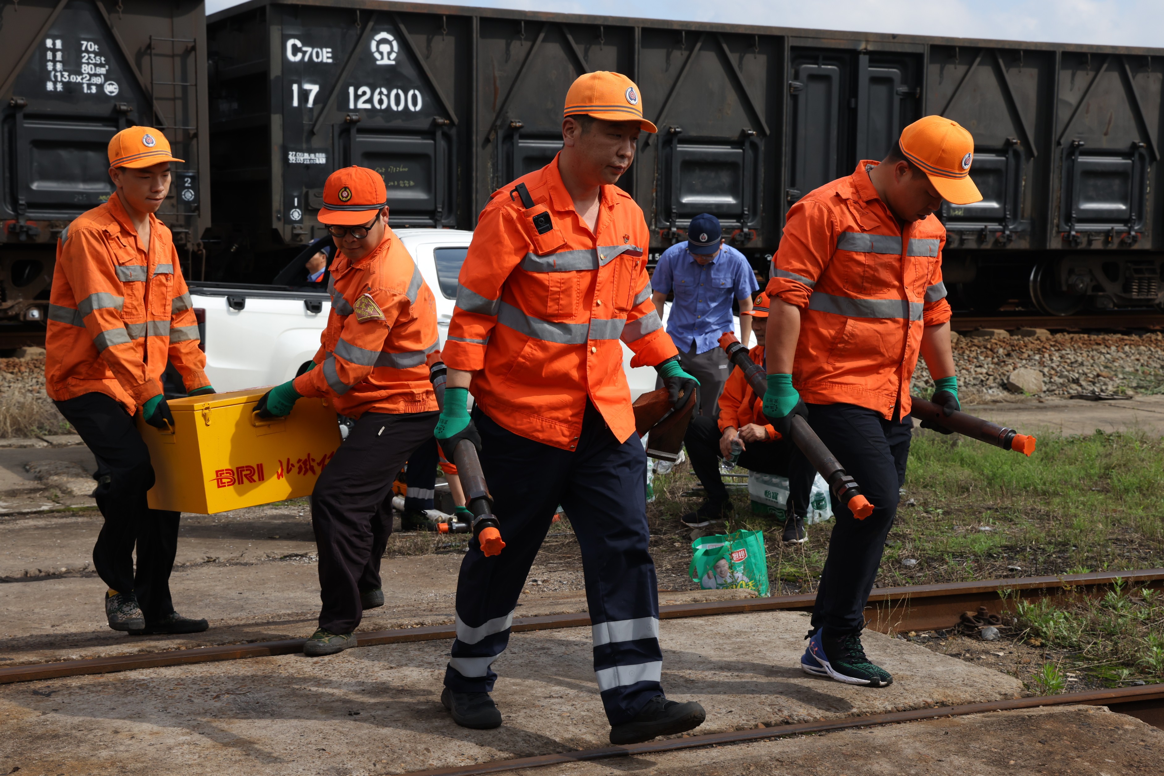 一场以“使用悬轮装置处置货车轮轴故障”为核心内容的2025年上半年货车故障应急演练正火热进行。来自各运用车间(作业场)的6支应急处置小组严阵以待,展开了一场速度与精准的较量。