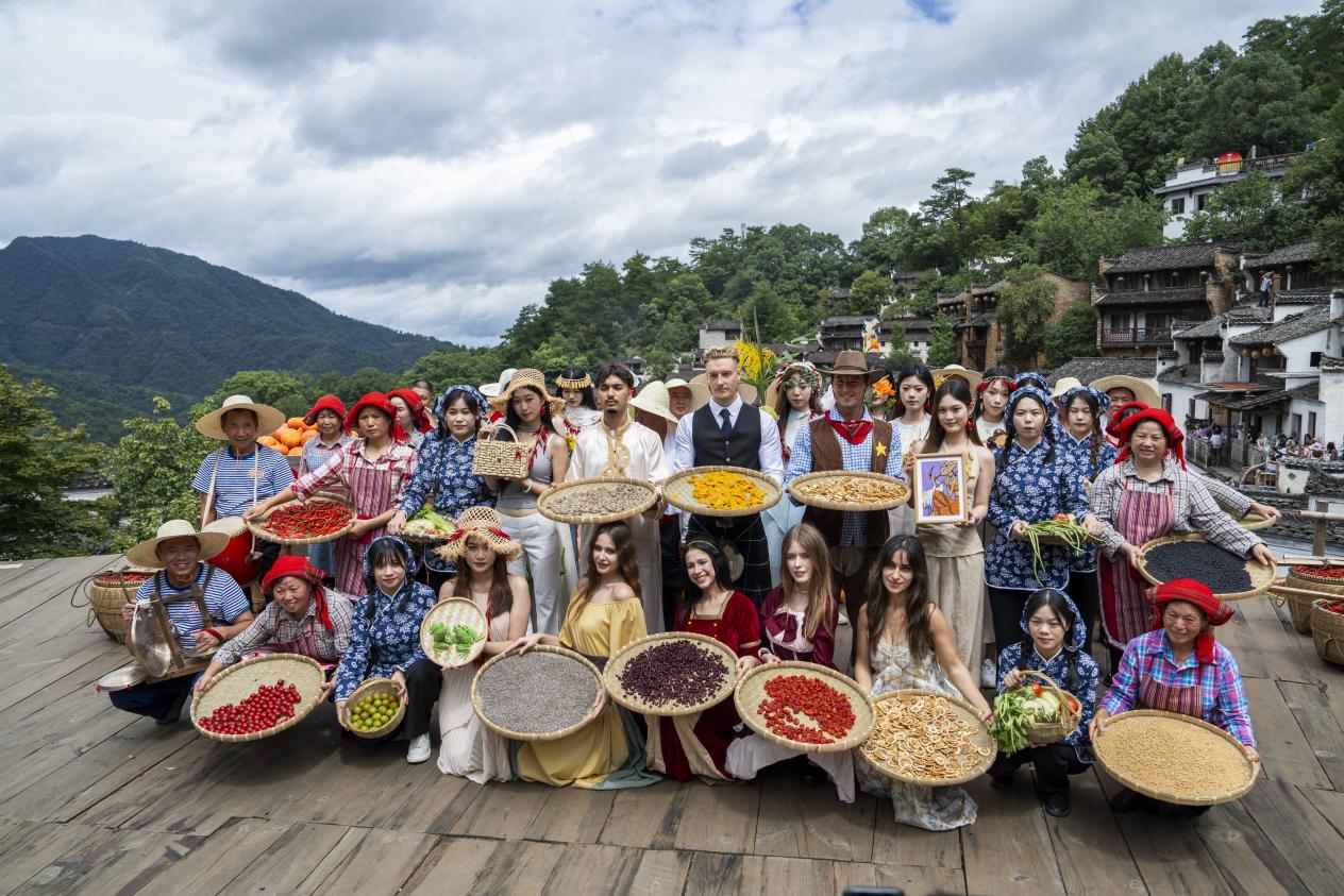 “晒•无界”国际互动展上,11个国家的经典晾晒食物(意大利干番茄、泰国:芒果干等)亮相创意平台,让游客在猜赏中读懂全球农耕智慧;“国际村T台秀”上,光影交错间,当地村民的质朴生活气息与国际队员的他乡丰收节奏同台碰撞,不同语言的欢笑汇入同一首丰收歌谣,彰显世界农耕文明的多元之美。