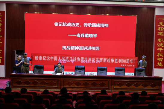 在中国人民抗日战争暨世界反法西斯战争胜利80周年之际,为传承红色基因、厚植爱国情怀,8月29日,抚州市乐安县人民武装部、乐安县退役军人事务局邀请老兵范晓平同志走进校园,为乐安一中师生带来了一场生动而深刻的抗日战争历史宣讲。