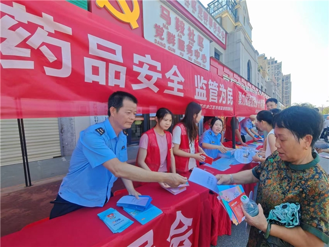 9月4日上午,江西省鹰潭市余江区市场监管局联合余江区药械协会、农工党余江区基层委员会、马鞍社区共同开展了以“药品安全监管为民”为主题的全国药品安全宣传周活动,组织监管执法人员、医疗机构医护人员和社区工作人员等开展药品医疗器械化妆品安全科普和法律法规知识宣传进社区。