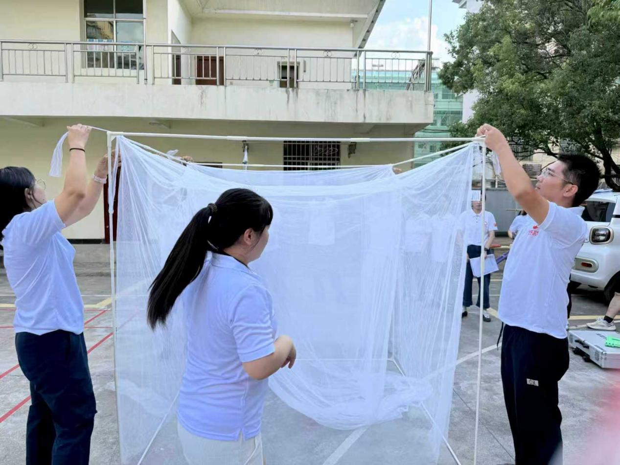 次阶段为实操演练,重点开展了媒介伊蚊应急控制与监测操作。现场演练了双层叠帐法监测蚊虫密度、超低容量喷雾消杀及滞留喷洒等专业技术,全面提升了应急队伍的实战操作能力和协同配合水平。