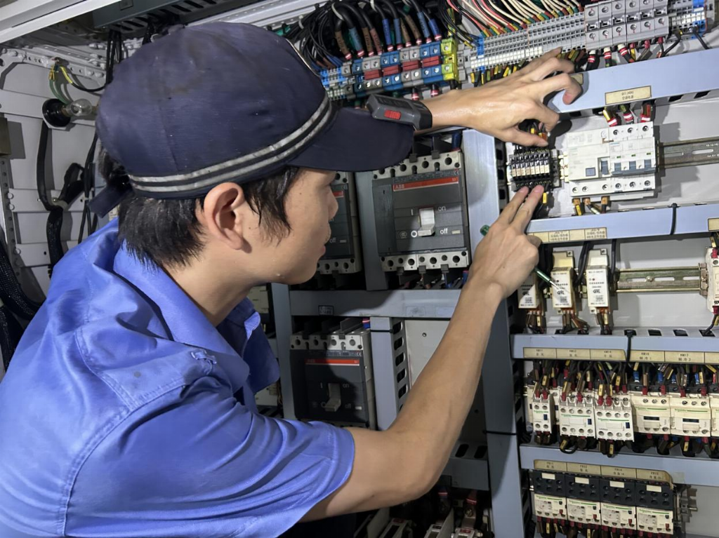 作业人员正在检查配电柜触摸屏电池日期吕轩摄