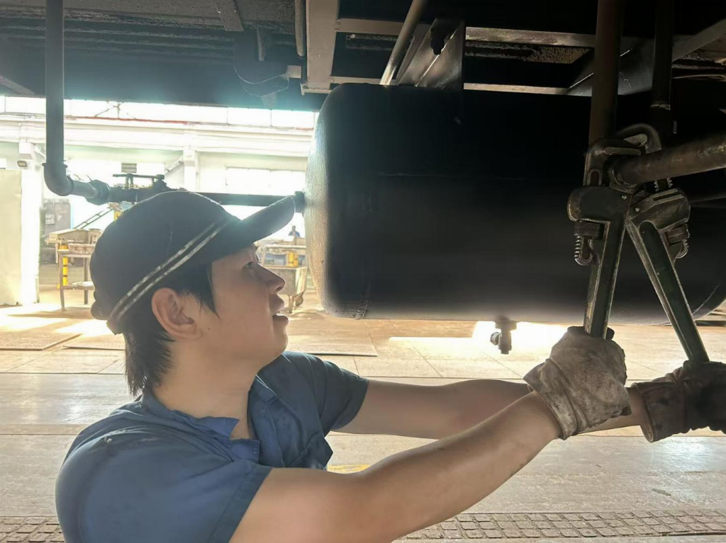 作业人员正在测量车钩配件钩锁铁吕轩摄