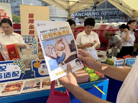 中国银行江西省分行在现场设置宣教展位和金融知识游戏互动区,重点向“一老一少”和新市民群体普及金融消费者八项权利、反诈防非、投资理财“三适当”等金融知识,并特别制作主题标语的原创消保纪念品,将金融知识融入消费者的身边。
