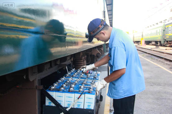 客车检车员正在对蓄电池极柱喷涂保护剂(叶琳艳 摄)