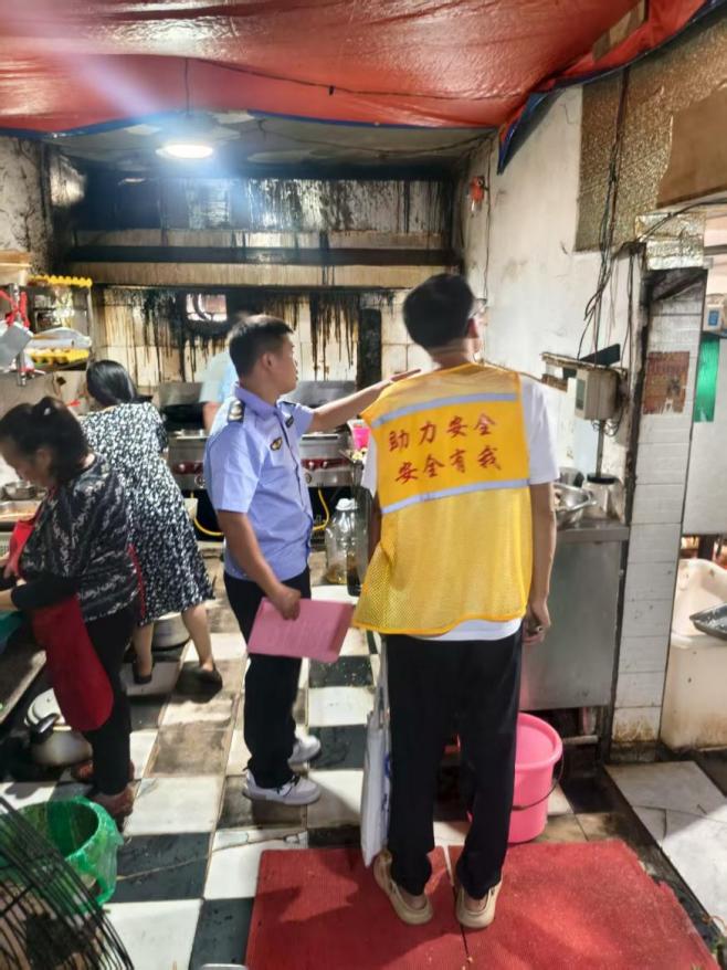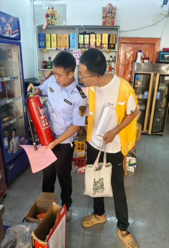 联合排查,消除安全隐患。乐安县市场监督管理局和城西社区的党员志愿者们对餐饮场所、商超、美容洗浴场所等九小场所开展拉网式排查,重点检查了灭火器有效期、消防通道畅通情况。同时,针对餐饮场所,重点检查了燃气报警器安装、燃气管道及厨房用火安全状况。在检查过程中,党员志愿者向“九小场所”负责人告知安全要点及有效防范措施,进一步强化风险防控能力。