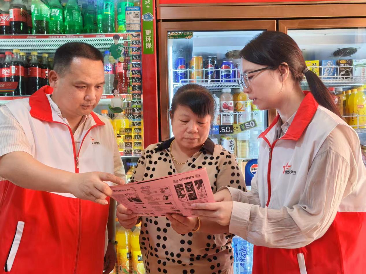 图为志愿者进店开展网络安全知识宣传