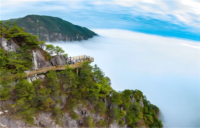 核心景点青云栈道全长约 3100米,盘旋于悬崖峭壁之上,忽高忽低,行走其间脚下便是万丈深渊,既是观云海、看日出的绝佳位置,也能将“绝壁惊人、怪石争奇”的四绝景观尽收眼底;壮观的五叠瀑布云谷飞瀑落差119.57米,被誉为江南第一高瀑也是宜春古八景之一;海拔1530米的月亮湖似一弯明月悬挂在山顶笔直的云杉矗立在湖水之中梦幻迷离,空灵唯美......