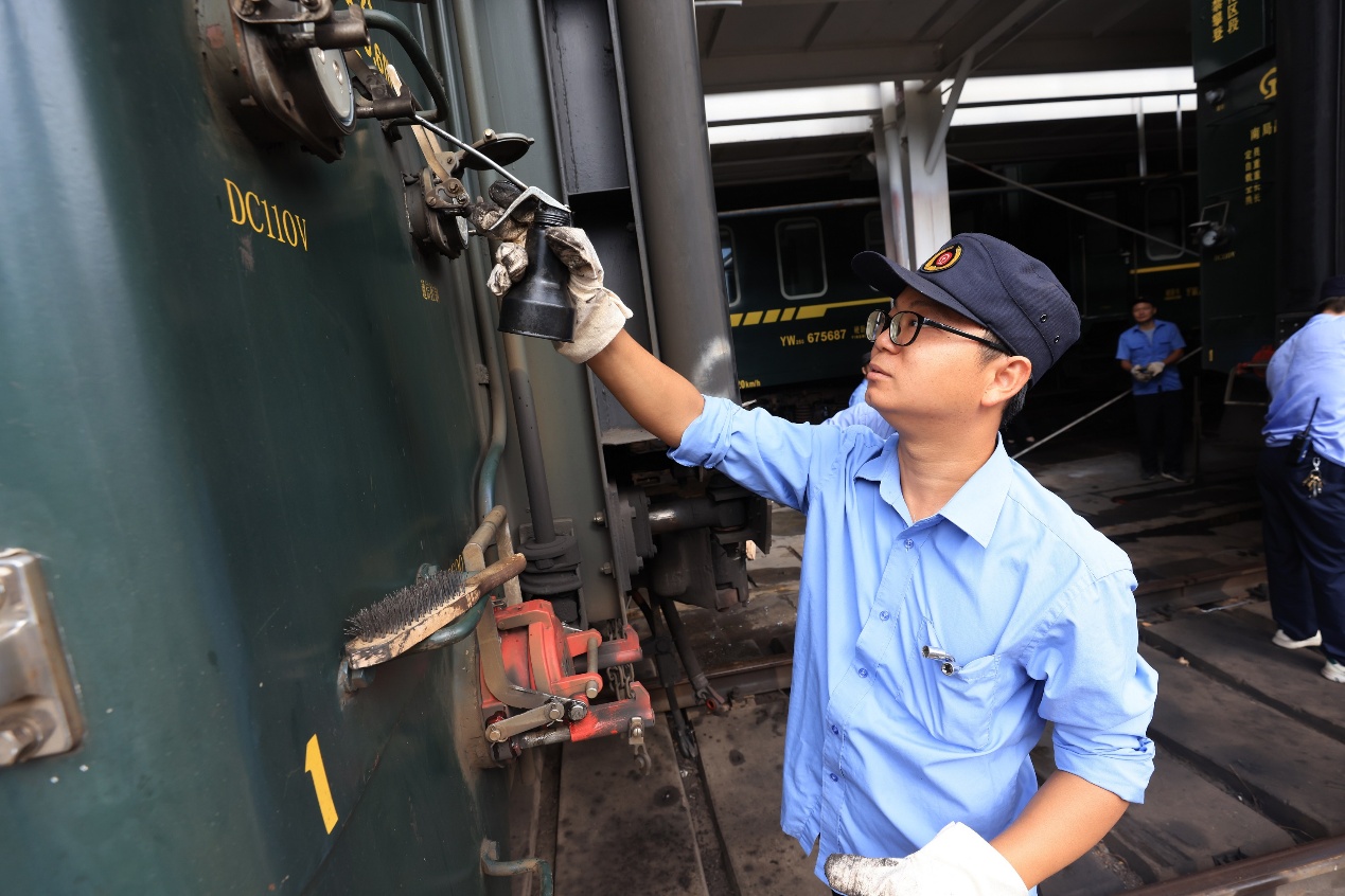 历经为期三个月的暑期运输后,为迅速恢复客车技术状态,迎接国庆中秋假期客流高峰,中国铁路南昌局集团有限公司南昌车辆段结合秋季整修特点,组织客车检车员重点对列车制动、动力连接、走行部、电力系统等部位加强整修,为列车运行安全提供坚实保障。(王超)