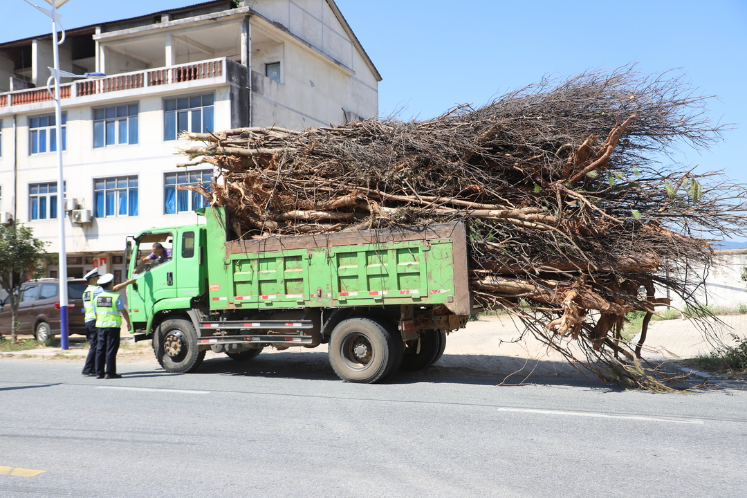 9月17日上午10时许,抚州市乐安县公安局交通管理大队山砀中队民辅警在S313省道开展交通违法整治时,发现一辆满载树木的半自卸货车行驶在公路上,存在极大的安全隐患,民警见状随即要求车辆靠边停车接受检查。