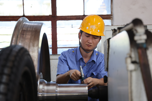 中国铁路南昌局集团有限公司南昌南车辆段车轮车间作为赣闽两省铁路唯一的车轮供应点,这里的轮对日供应量已增至45对,每一对轮对都关系着京九、沪昆等干线的运输畅通。为确保中秋、国庆假期铁路运输安全稳定,职工们严格落实客、货车轮对检修作业标准,全力保障出厂每一条轮对都尺寸合规、质量合格。(黄浩)