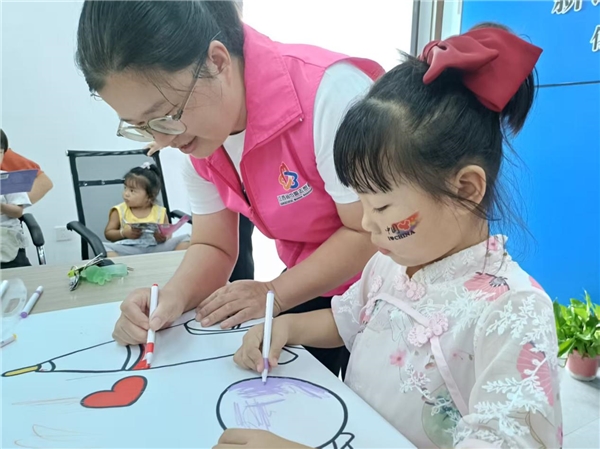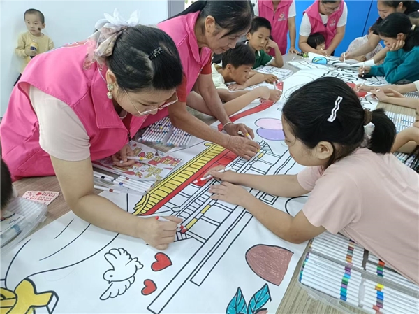 活动伊始,志愿者向孩子们生动讲述了国庆节的意义,引导他们感受国家发展的辉煌成就与今日幸福生活的来之不易,在他们心中播撒下爱国主义的种子。同时引导孩子们在创作中感受祖国的繁荣富强,激发爱国热情与民族自豪感,成长为担当民族复兴大任的时代新人。