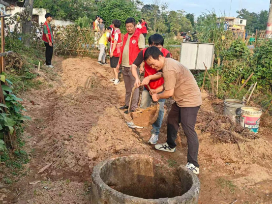活动当日,党员志愿者们身着红色马甲,带着铁锹、镐头等工具准时集结,积极投入深井填埋工作中。大家分工明确,有的负责搬运沙土、石块等填充物资,有的同步清理周边杂物、设置临时安全提示标识,引导居民绕行。大家不怕脏、不怕累,分工协作、默契配合,经过3个多小时的奋战,原本隐患重重的深井被彻底填平,周边地面恢复平整,安全风险从根本上消除。过往居民纷纷驻足,对党员志愿者们的辛勤付出表示衷心感谢。