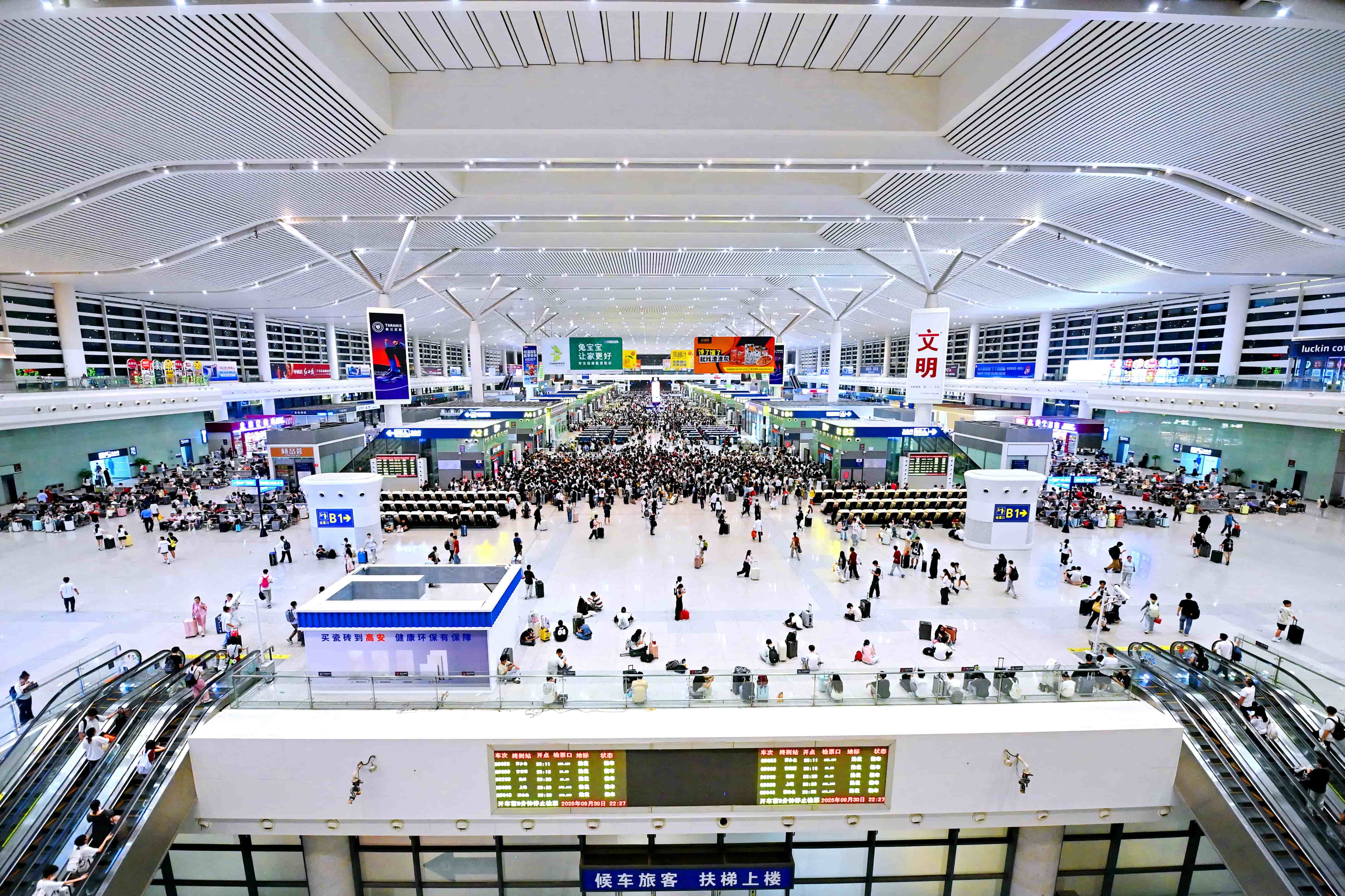 9月30日晚,人流如织的南昌西站候车大厅。人民网朱海鹏摄