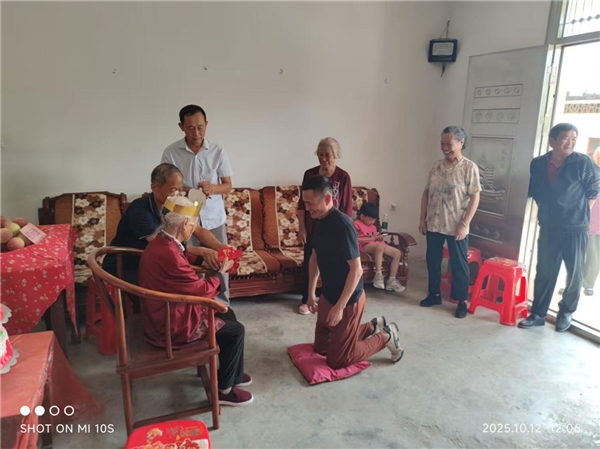 寿辰当天,镇党委书记欧阳磊带领工作人员登门慰问,送上生日蛋糕与慰问金,细致询问老人饮食起居,叮嘱家属悉心照料。村委会负责人欧阳乐华表示,简办寿辰既传递了对老人的敬爱,更以实际行动践行移风易俗,让尊老爱老美德与文明新风相融。