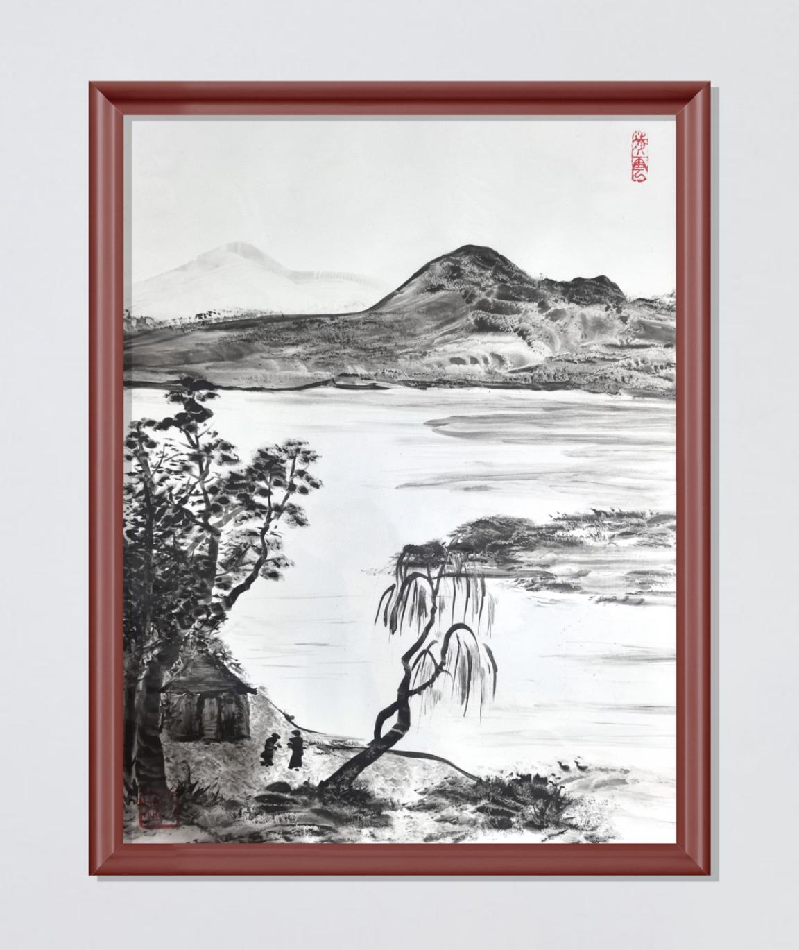 李猛是如今干洲手指画最有名的“掌墨人”。他十七岁跟着村里老画匠学画,最初总觉得手指画“不上台面”,直到看见师父用拇指蘸淡墨,在纸上轻轻一揉,竟画出了雨后荷叶上滚动的露珠。“手指能触到墨的温度,画笔不行。”师父的话让他记了三十年。如今他的画里,既有《乡趣图》中田园农家的泥土香,也有《夏日荷鱼》里荷叶下游曳的精灵,去年一幅《干洲十景》在非遗展上展出时,有老人盯着画里的古桥落泪:“这就是我小时候赶圩的路啊!
