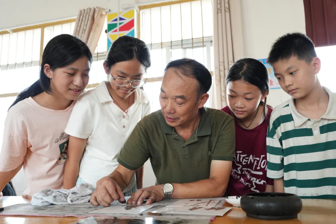 如今再走进干洲镇,时常能看见田间地头的画案:农妇放下锄头,指尖蘸墨就能画朵稻穗;孩童放学归来,在石板上用湿手指画只小狗。这门从泥土里长出来的艺术,没有精致的画框,却装着最鲜活的乡土记忆。就像李猛常说的:“只要指尖还能沾墨,乡土的故事,就永远画不完。”(舒启明、滕轲)