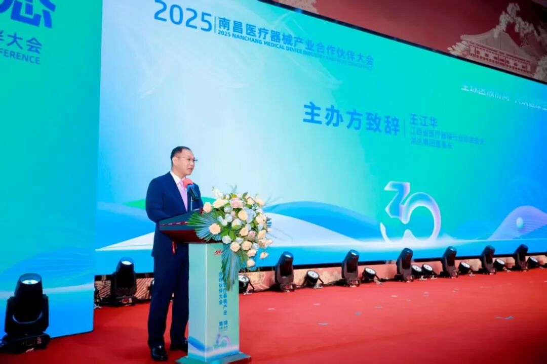 这些签约项目构建起“材料-设备-研发-市场”的全链条合作网络,既是洪达集团深耕行业三十载、以龙头企业担当推动产业整合的生动实践,也为南昌医疗器械产业在技术创新、供应链升级、产学研转化等领域开辟了协同发展新路径。江西省医疗器械行业协会会长、洪达集团董事长王江华在致辞中表示:“洪达的三十年,是中国医疗器械产业从小到大、从弱到强的缩影。今天的签约是产业协同的新起点,我们将以开放姿态携手伙伴,共推行业迈向高端化、智能化、国际化。”