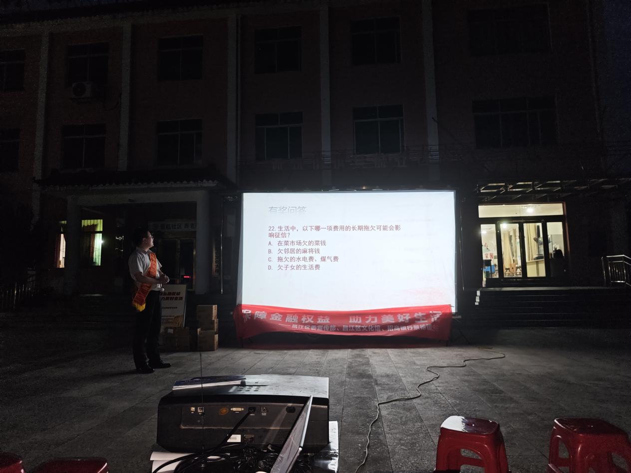 活动现场采用露天电影大屏投影与PPT讲解相结合的方式,为乡村居民系统普及征信基本常识,重点揭示所谓“征信修复”常见骗局的操作手法与真实危害。工作人员运用本地方言进行亲切易懂的讲解,并结合贴近农村生活的真实案例增强代入感,切实帮助村民提升信用保护意识和自我维权能力。