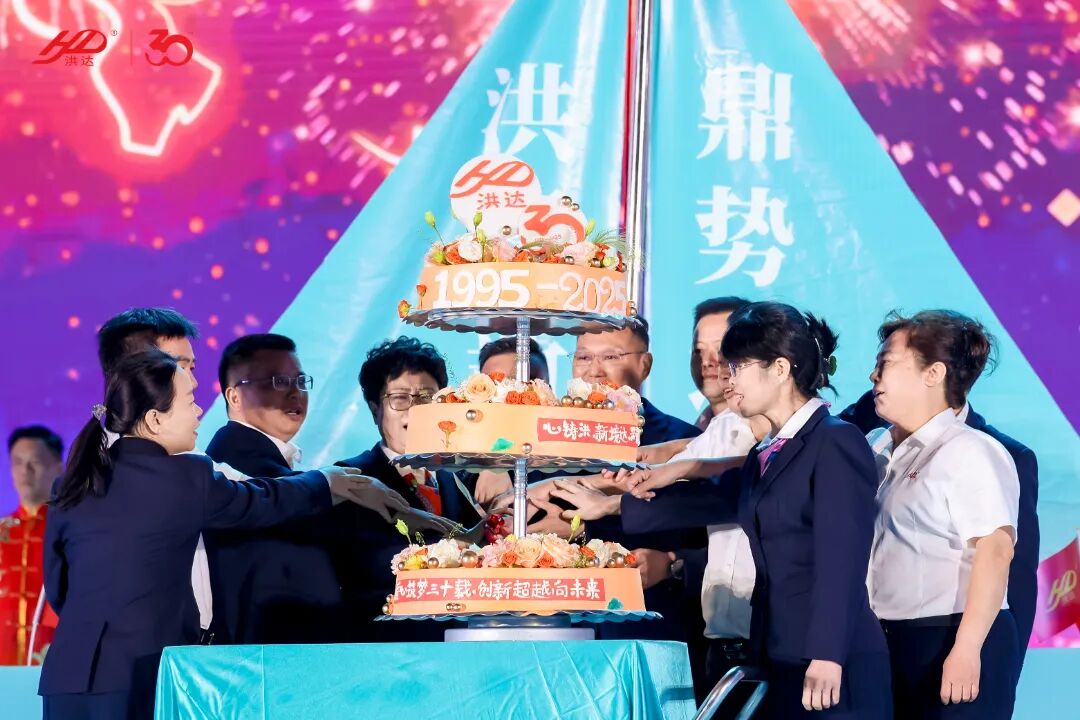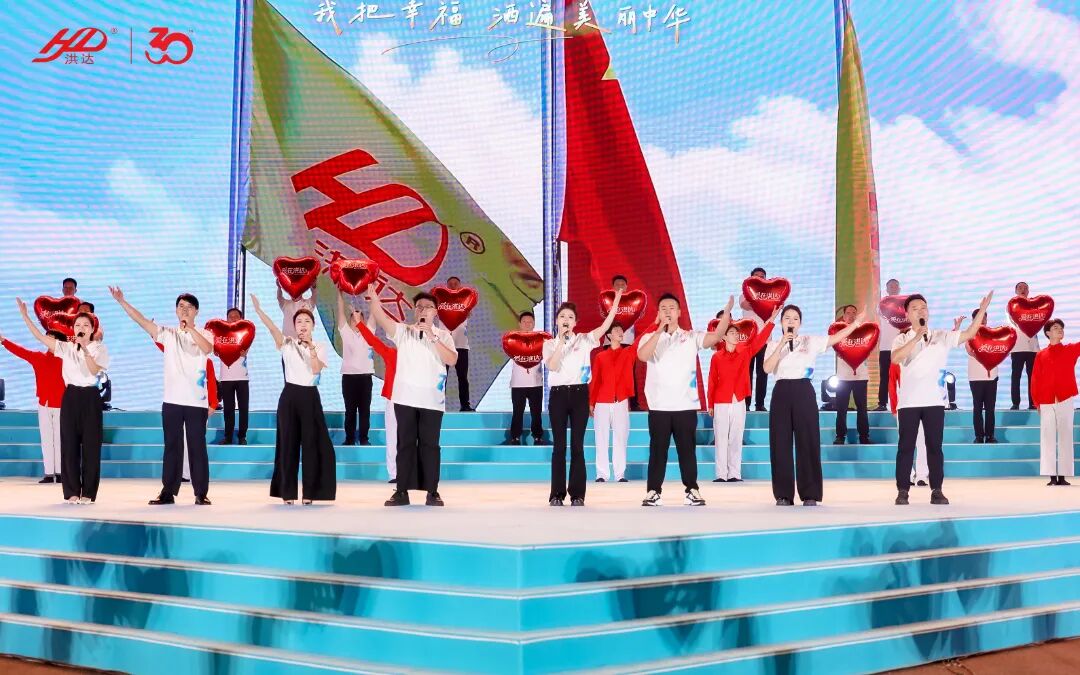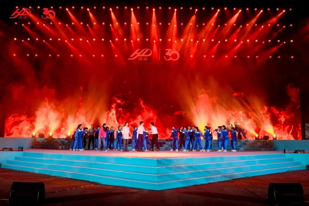 洪达医科园厂区内,庆典盛大启幕。庆典以“心铸洪,新境达,兴荣光”为主题。沉浸式光影秀《破茧・光溯》勾勒洪达发展节点,先导片《洪流》、宣传片《三十而立,三十而跃》诠释“洪达精神”。“洪心汇聚”旗阵仪式上,经销商、供应商及国际友人挥旗显协同力,获领导认可。