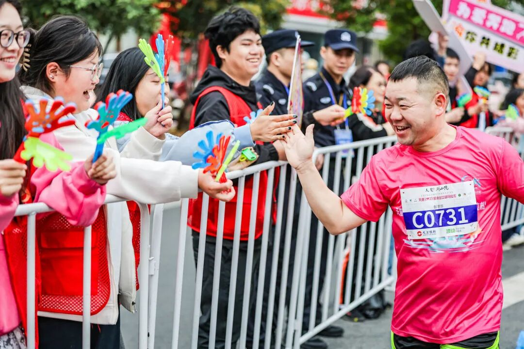 赛道沿途22个“市民文化加油站”各具特色,舞龙舞狮等非遗表演轮番上演,市民自发组成的加油队伍呐喊助威,让每一公里都充满温暖与力量。