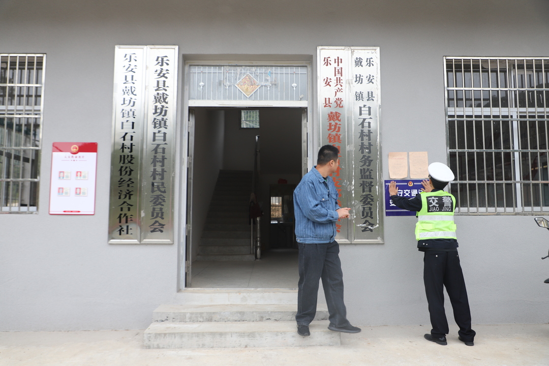为进一步做好农村交通安全管理工作,预防和减少道路交通事故,10月21日,抚州市乐安县公安局交通管理大队组织民警深入戴坊镇白石村开展交通安全宣传活动。