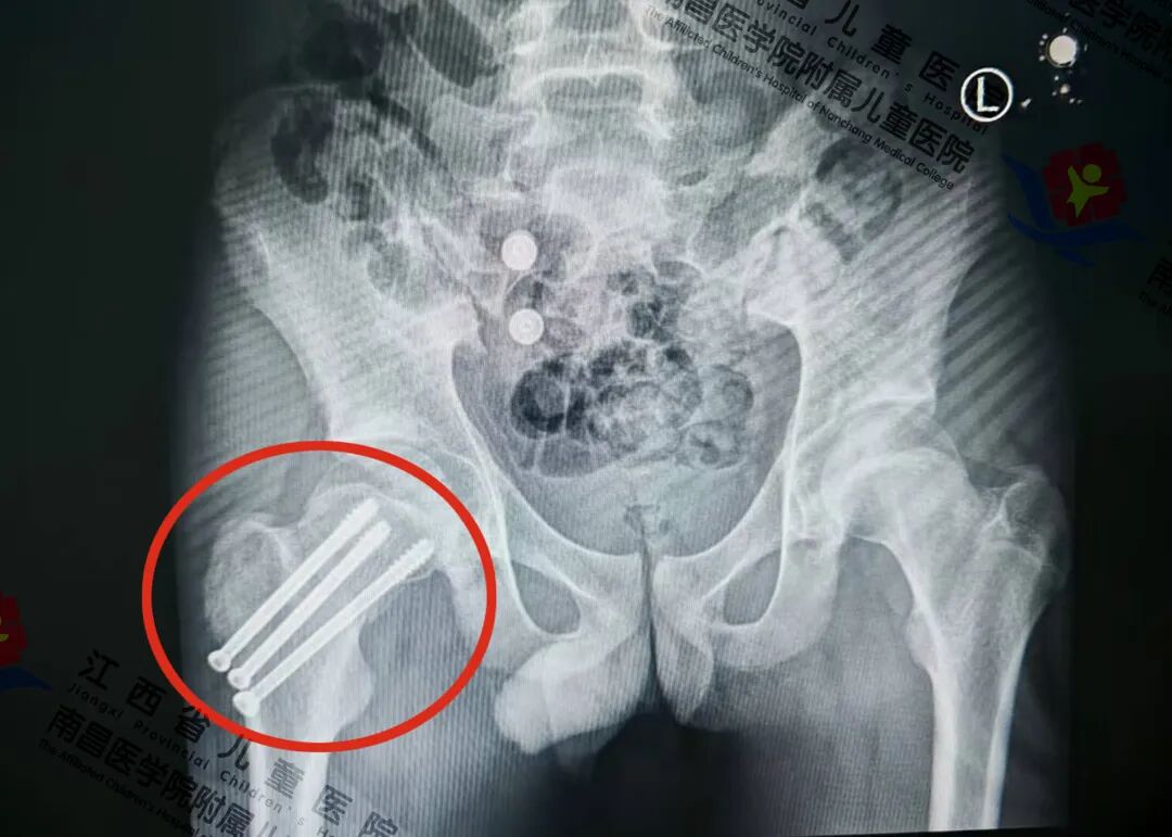 近日,14岁男童小鸥玩耍时脚下突然一滑,整个人失去平衡重重地摔倒在地,右侧髋部直接着地。巨大的冲击力让他瞬间疼得龇牙咧嘴。起初家人以为只是普通摔伤,然而随着时间的推移,小鸥右侧髋部疼痛症状没有减轻,反而愈发剧烈,出现较为明显的肿胀。父母立即带其前来江西省儿童医院骨科门诊。副主任医师熊志刚发现小鸥右侧髋部有明显压痛且活动受限,为其右侧髋部进行详细检查检查结果显示为右侧股骨颈骨折。