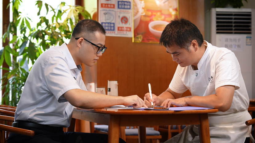 九江银行南昌分行客户经理赴江小轩•金牌汤包店上门办理业务