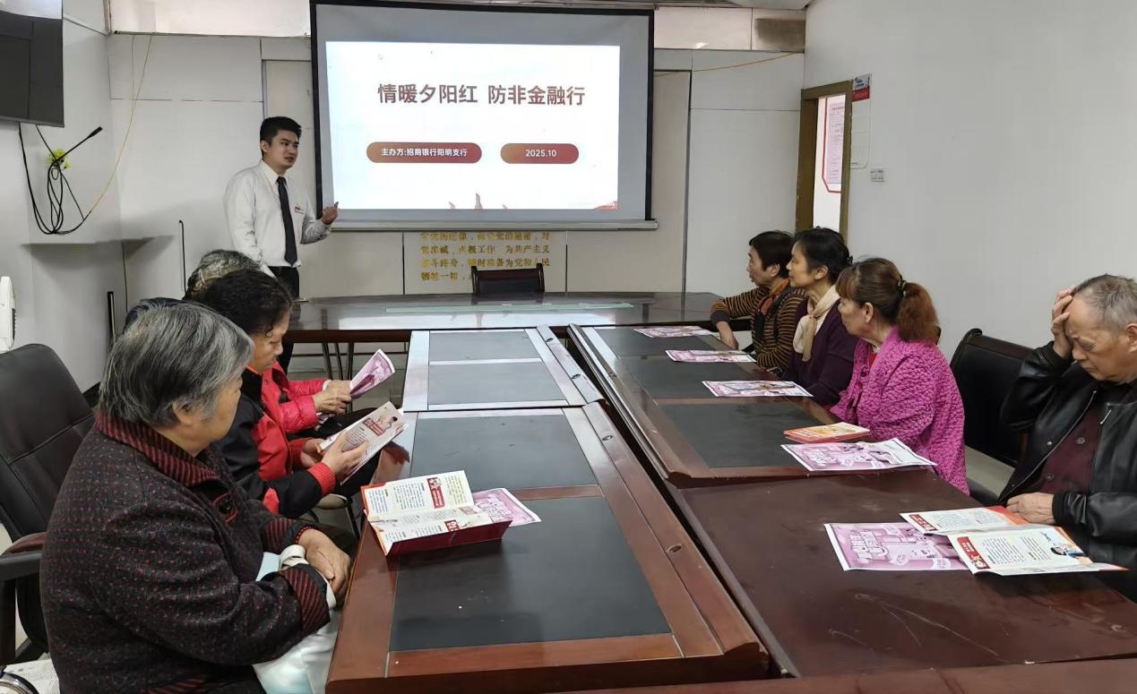 秋风送爽,桂香盈枝。为切实增强老年群体防范金融诈骗与非法金融活动的意识与能力,在重阳节来临之际,招商银行南昌阳明支行主动“走出去”,走进百花洲街道社区,开展“情暖夕阳红•防非金融行”主题宣传教育活动,当专业与温情相融,理性与关怀并行,便绘就了一幅金秋时节中最有温度的“守护画卷”。
