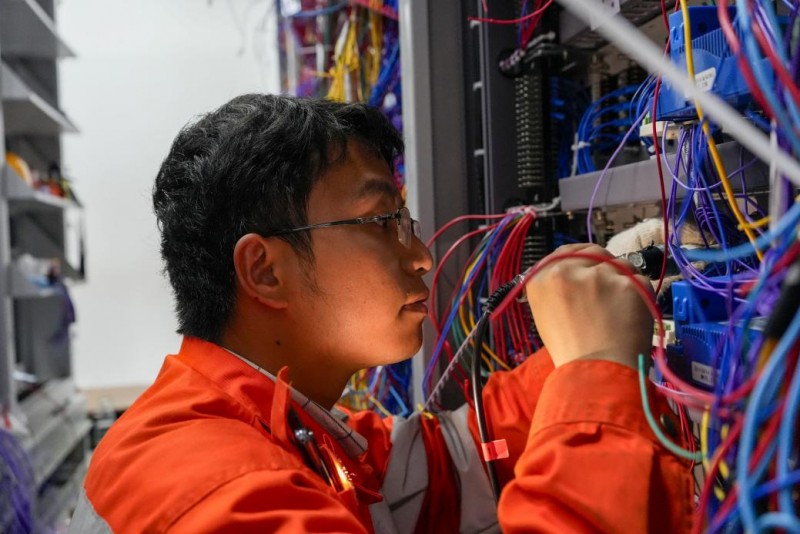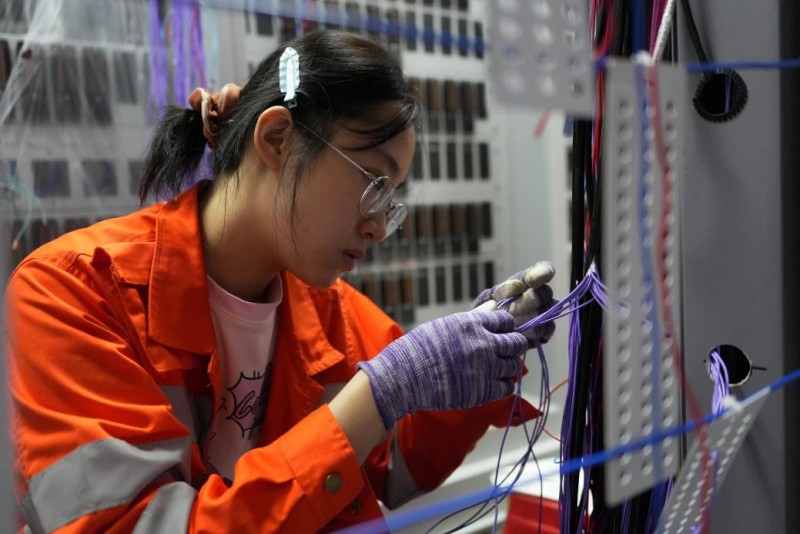在这场攻坚战中,一支年轻的队伍挑起了大梁。在密如蛛网的机柜背后,信号专修二工区00后副工长陈坚正俯身于复杂的线束中,手持电烙铁,进行焊线作业。