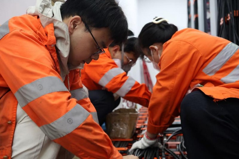 “红色这根是去分线盘的,千万不要和电源正极的线搞错了!”作为工区最年轻的副工长,这是陈坚第一次负责如此规模的工程。他耐心地向身边的同事讲解着要点,语气里透着与年龄不相符的沉稳。在他的调度下,现场人员分工明确,一人核对图纸编号,一人布放线缆,配合默契,井井有条。