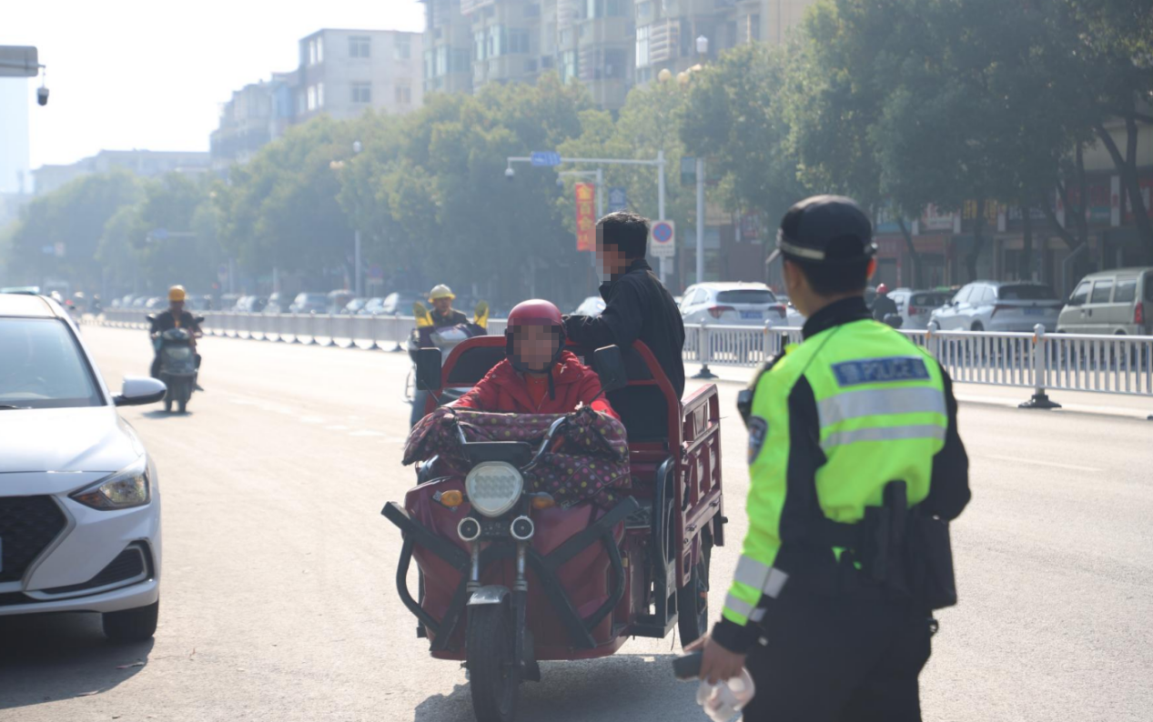 三轮车违法载人,交警紧急喊停