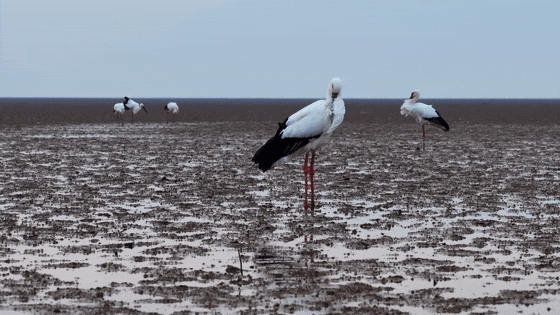 冬东方白鹳大部队飞抵鄱阳湖越冬 数量创下近年新高