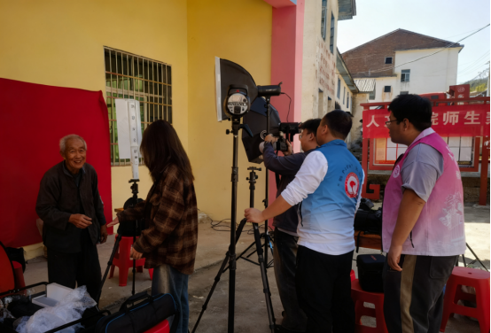 与此同时,随行摄影组发挥专业特长,不仅免费为村里的老人们拍摄、打印证件照与全家福,还义务帮他们把心仪的照片装裱装框。一张张定格岁月温情的照片,既为老人们留存了珍贵的时光印记,也传递着社会各界的关爱与暖意,让参与者在实践中提升了审美素养,增强了责任担当。采访组的志愿者则与老人们促膝长谈,耐心询问他们的生活近况,倾听他们讲述金竹村的变迁故事与畲族的中华优秀传统文化,在温情互动中挖掘民族文化根脉,传承红色记忆与民俗风情。活动尾声,郑艺豪导师、全体志愿者与畲族村民们并肩合影,定格下各族群众心连心、手拉手的美好瞬间。