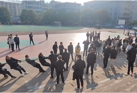 清晨的操场早已热闹起来。干部职工们分工协作,布置场地、调试器材,为运动会做好充分准备。随着哨声响起,赛场瞬间沸腾。团体拔河项目中,队员们紧握长绳、同心协力,呐喊声震彻操场;“绳”采飞扬、踢毽子、百米跑等个人项目里,选手们各显身手,动作轻盈矫健。场边,加油声与欢呼声此起彼伏,将赛场气氛一次次推向高潮。