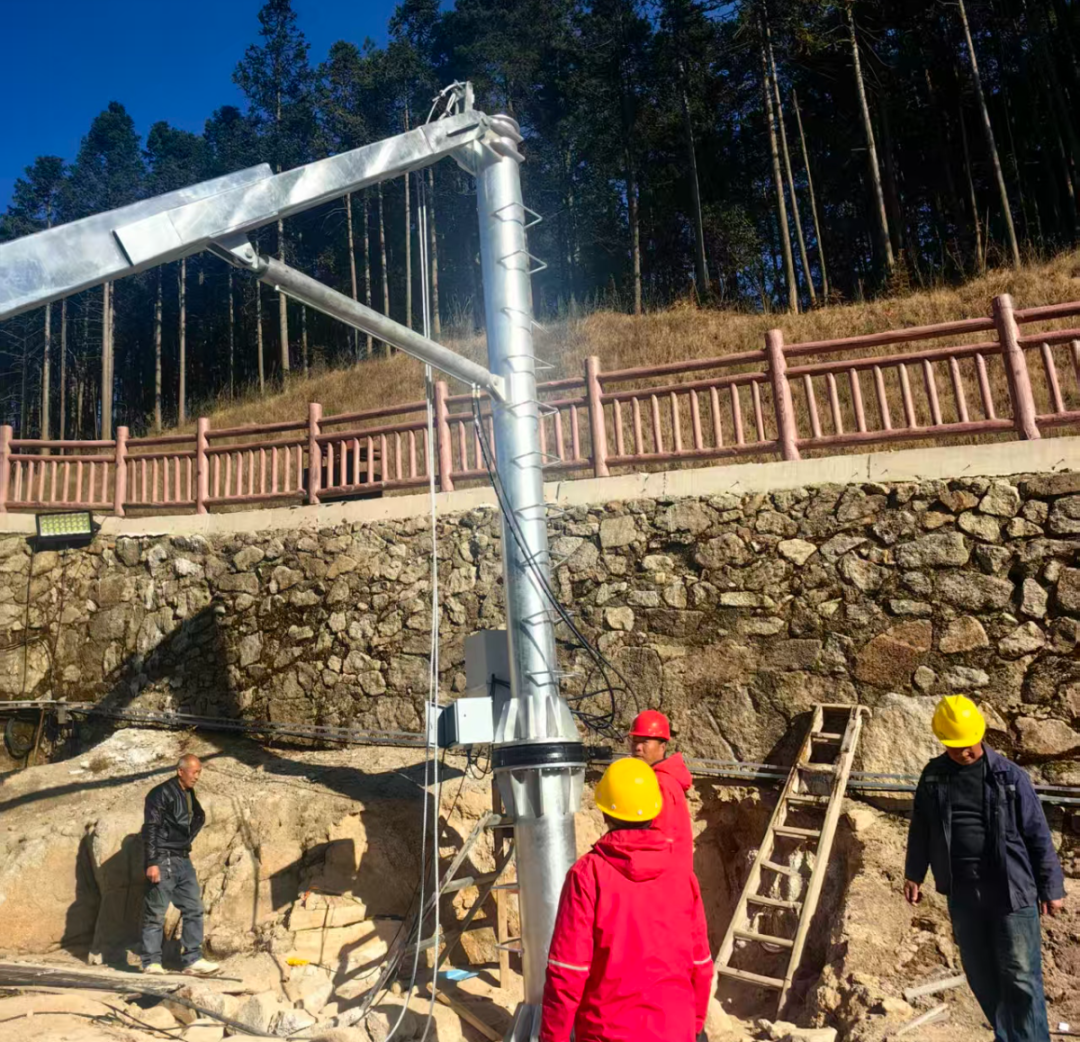 工人们正加紧调试夜场亮化工程设备