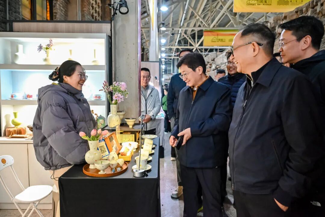夜幕降临,陶溪川文创街区里,人流往来不息,昔日国营瓷厂老厂房已升级成为景德镇文旅新地标。27日晚,吕家进一行走进陶溪川文创园,实地感受陶瓷文化创意与旅游业的融合发展新业态。他表示,要准确把握文旅经济发展新趋势新业态新模式,加快布局文旅金融新赛道,进一步释放文旅消费“乘数效应”,为促进消费、扩大内需贡献金融力量。