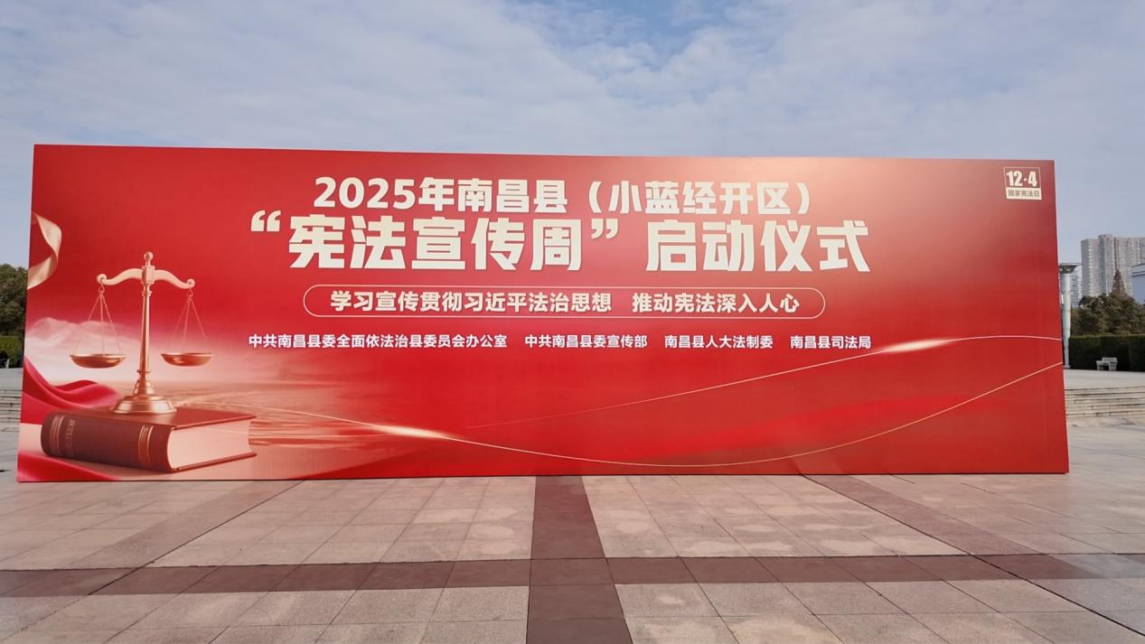 2025年12月4日上午,由中共南昌县委全面依法治县委员会办公室、中共南昌县委宣传部、南昌县人大法制委和南昌县司法局共同主办的2025年南昌县(小蓝经开区)“宪法宣传周”启动仪式在南昌县澄碧湖广场南苑隆重举行。活动围绕“学习宣传贯彻习近平法治思想,推动宪法深入人心”主题,集启动仪式、集中普法、文化体验于一体,现场氛围热烈,法治气息浓厚。