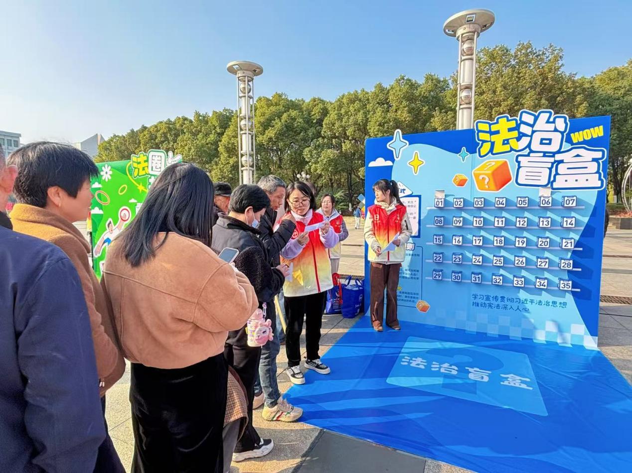 -法治盲盒挑战板块:将知识问答与惊喜抽奖结合。参与者随机抽取法律题目进行挑战,答对即可赢得抽取法治小礼品(含法治文创、非遗作品等)的机会。这种兼具知识性与趣味性的形式,极大激发了群众的参与热情。