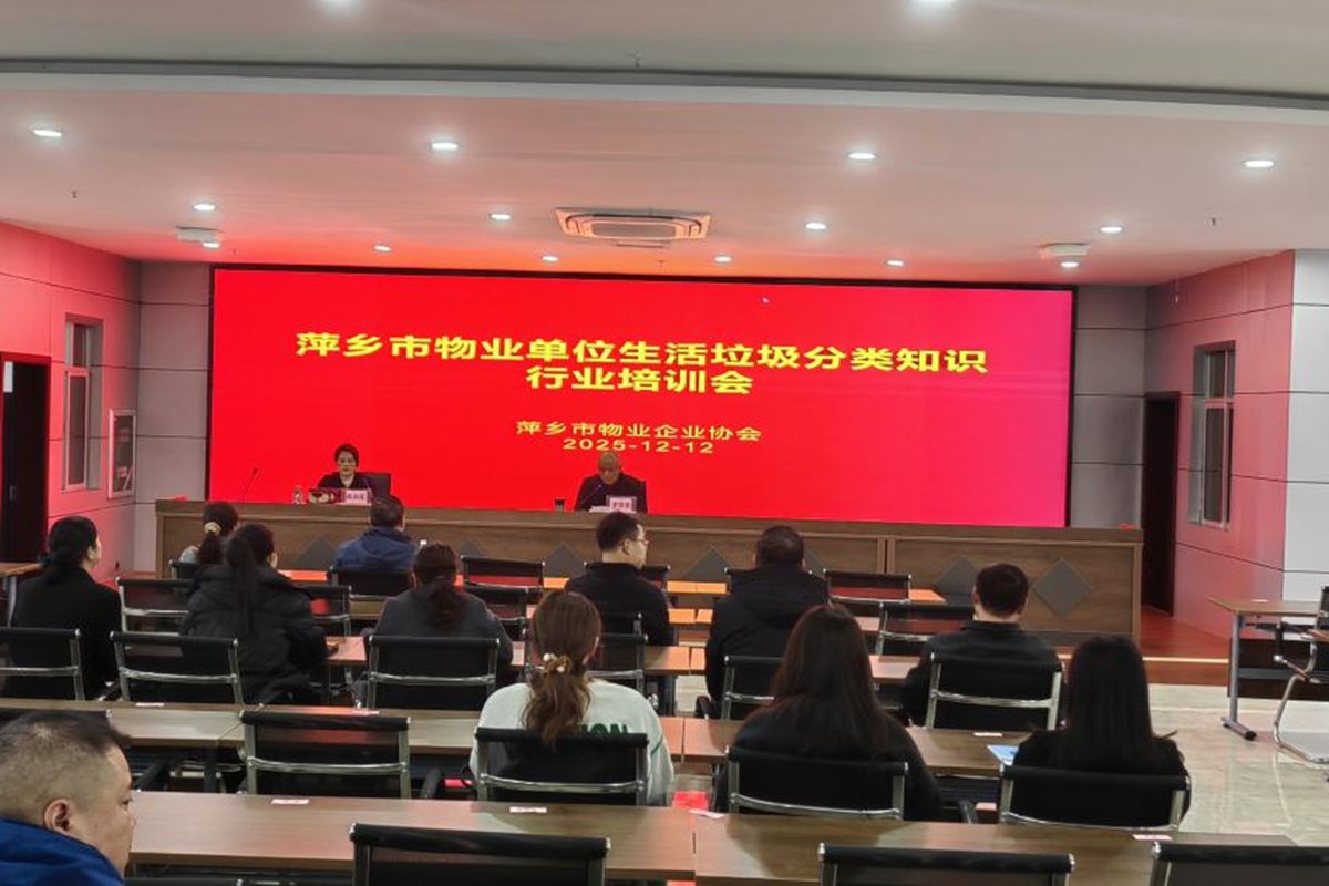 为深入贯彻落实《江西省生活垃圾管理条例》,全面提升物业单位垃圾分类规范化管理水平,进一步推进我市生活垃圾分类工作落地见效,12月12日上午,萍乡市城市管理局联合市住房和城乡建设局、萍乡市物业企业协会组织开展全市物业单位生活垃圾分类知识培训会,市城乡环境综合治理中心副主任罗萍荣主持会议,全市共72家物业服务企业主管人员参加了本次培训。