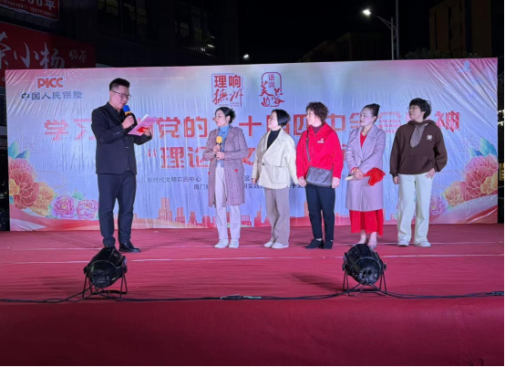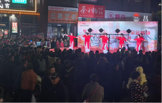 抚州市乐安县新时代文明实践中心联合县城市社区管委会南门社区新时代文明实践站、人保财险乐安支公司、乐安援手义工协会在大都汇广场开展了一场学习贯彻党的二十届四中全会精神“理论+文艺”汇演。
