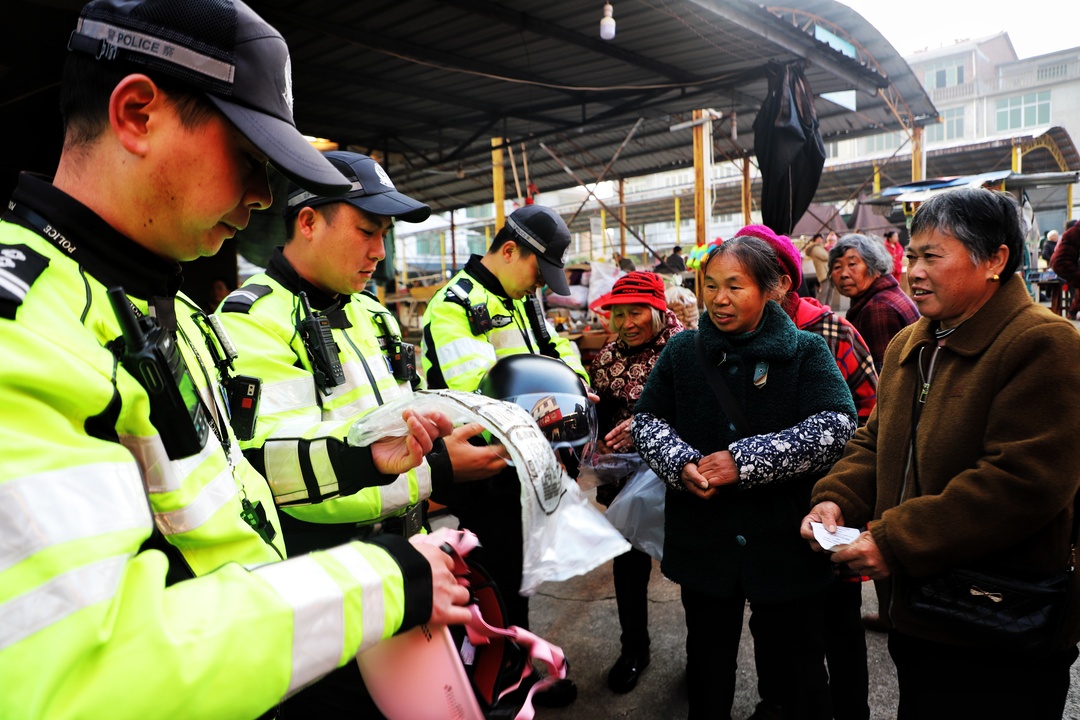 活动中,工作人员通过悬挂横幅、发放宣传资料、现场讲解等方式,向村民普及交通安全知识和保密法律法规。结合农村道路交通实际和群众出行特点,民警重点讲解三轮车违法载人、骑乘电动车和摩托车不佩戴安全头盔、酒后驾驶等交通违法行为的危害性,倡导村民遵规守法,做一名合格交通参与者。针对群众提出的驾乘“老年代步车”的问题,民警耐心讲解此类车辆的安全隐患及可能引发的严重后果,并结合近期发生的典型事故案例进行警示。活动现场民警还为村民免费发放安全头盔,并耐心讲解正确佩戴方法,倡导大家从“头”做起、安全出行。
