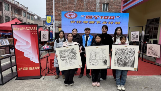 12月21日,冬至,由江西“四个100”文艺导师曾群浪、抚州市文艺导师郑艺豪及赣东学院师生共同策划的“怡老益小•艺脉相承——城乡交流艺术展暨‘四个100’文化导师下乡计划成果展”在抚州市乐安县金竹畲族乡金竹村村民活动中心外精彩举行。