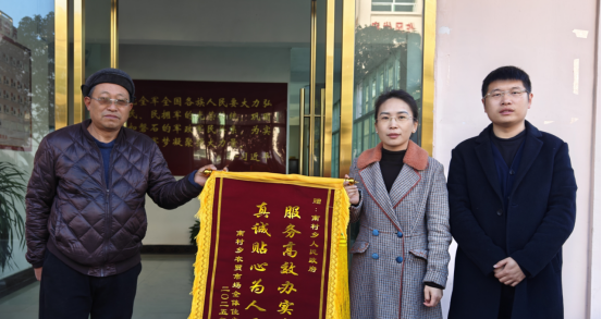 “感谢南村乡人民政府为我办理了不动产证,服务高效办实事,真诚贴心为人民!”近日,刚拿到不动产证的抚州市乐安县南村乡集镇商户张先生为南村乡人民政府送来了锦旗并对乡里的高效便民服务竖起了大拇指。