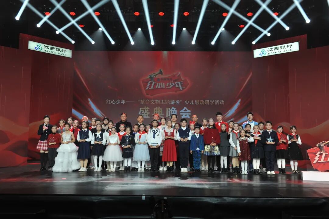 12月27日,由江西银行、江西广播电视台联合主办,江西省文化和旅游厅全程指导的“红心少年——革命文物主题游径”少儿思政研学活动盛典晚会,在江西广播电视台演播厅成功举办。晚会全面展示了研学成果,表彰了活动中表现优异的少年学员,为这场贯穿全年的青少年红色教育实践活动画上圆满句号。