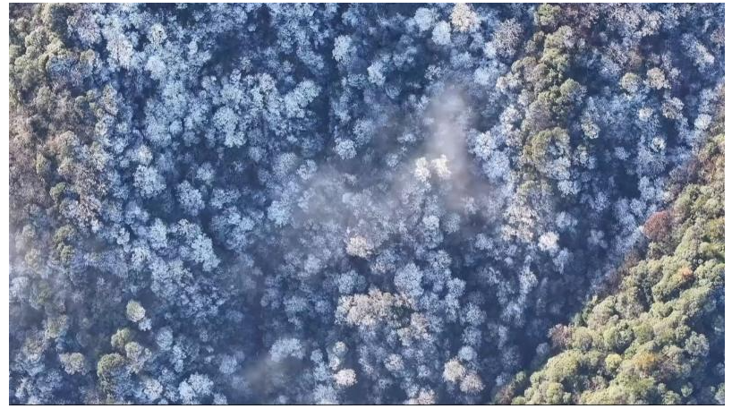 最高海拔超过1300米的于都县屏山风景区同样迎来了今冬首场雾凇景观,洁白的冰雪、翻涌的云海与巨型的风车相互映衬,形成了南方不可多得的冰雪世界,吸引众多游客专程前来赏冰玩雪。