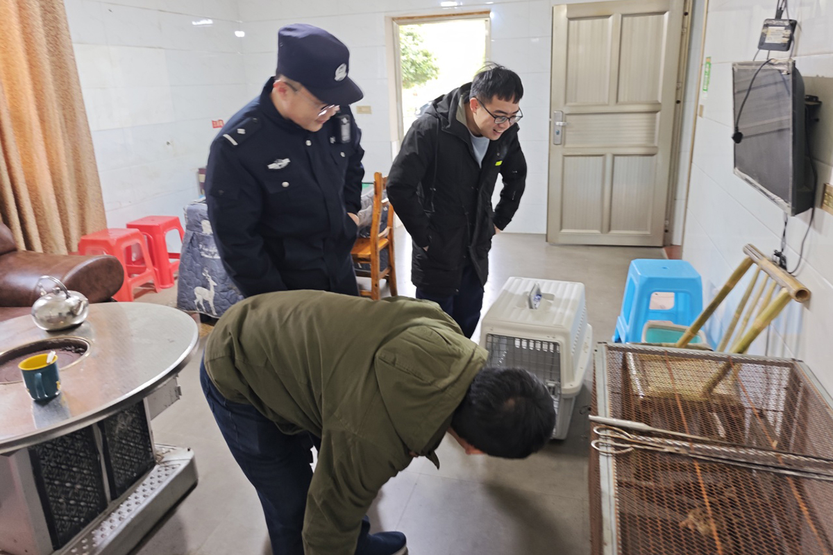 1月12日,萍乡武功山风景名胜区麻田派出所接到辖区群众报警,称其本人在家中意外发现一只疑似受伤的野生动物。值班民警迅速赶赴现场,并联动区林业部门专业人员共同开展救助。