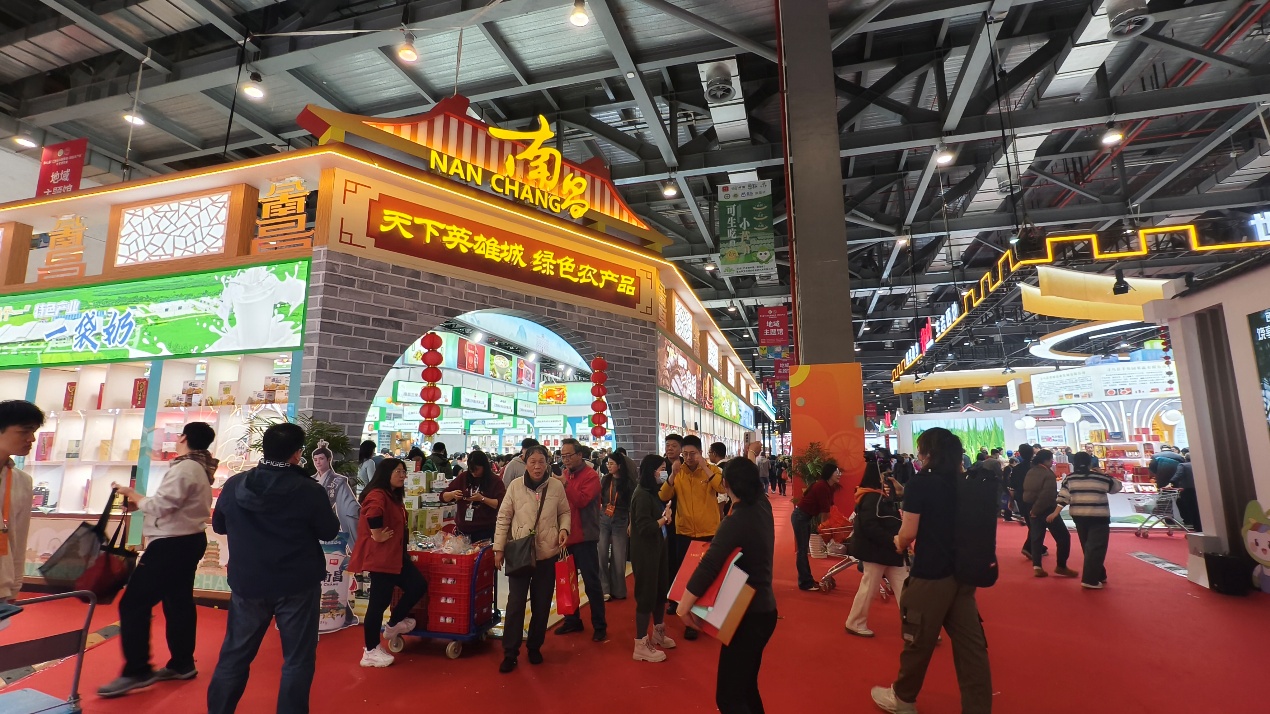 本届农博会展览面积首次突破2万平方米,达2.6万平方米,设置地域主题馆、产业领军馆、品牌展示馆及三大特色主题集市四大板块,创新采用“地域风情街区”设计,让观众沉浸式领略赣鄱农业风貌与文化内涵。展会汇聚全省800余家农业企业、6000余款优势农产品,涵盖粮油、果蔬、畜禽、水产等多个品类,既有恒顶大米蛋白、军山湖大闸蟹等千余款精品爆品,也有赣南脐橙、庐山云雾茶等地方名优特产。同时,湖南、湖北、广西等6个兄弟省份组团参展,进一步丰富了展品的地域多样性。
