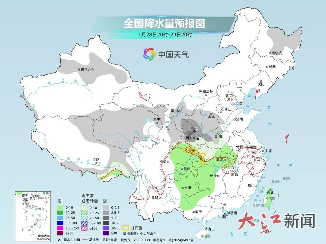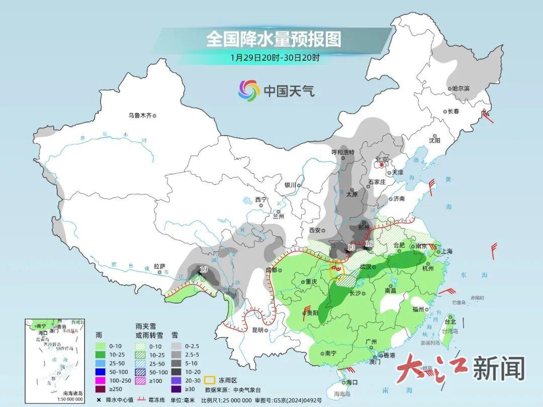 据中国天气网,预计1月29日至31日,湖北西部、江西西北部、湖南西北部、贵州东北部、安徽南部、浙江西部等地高海拔山区有雨转雪、雨夹雪,湖北西部、湖南西部、贵州东部等局地有冻雨。上述地区累计降水量5~20毫米,局地30毫米。